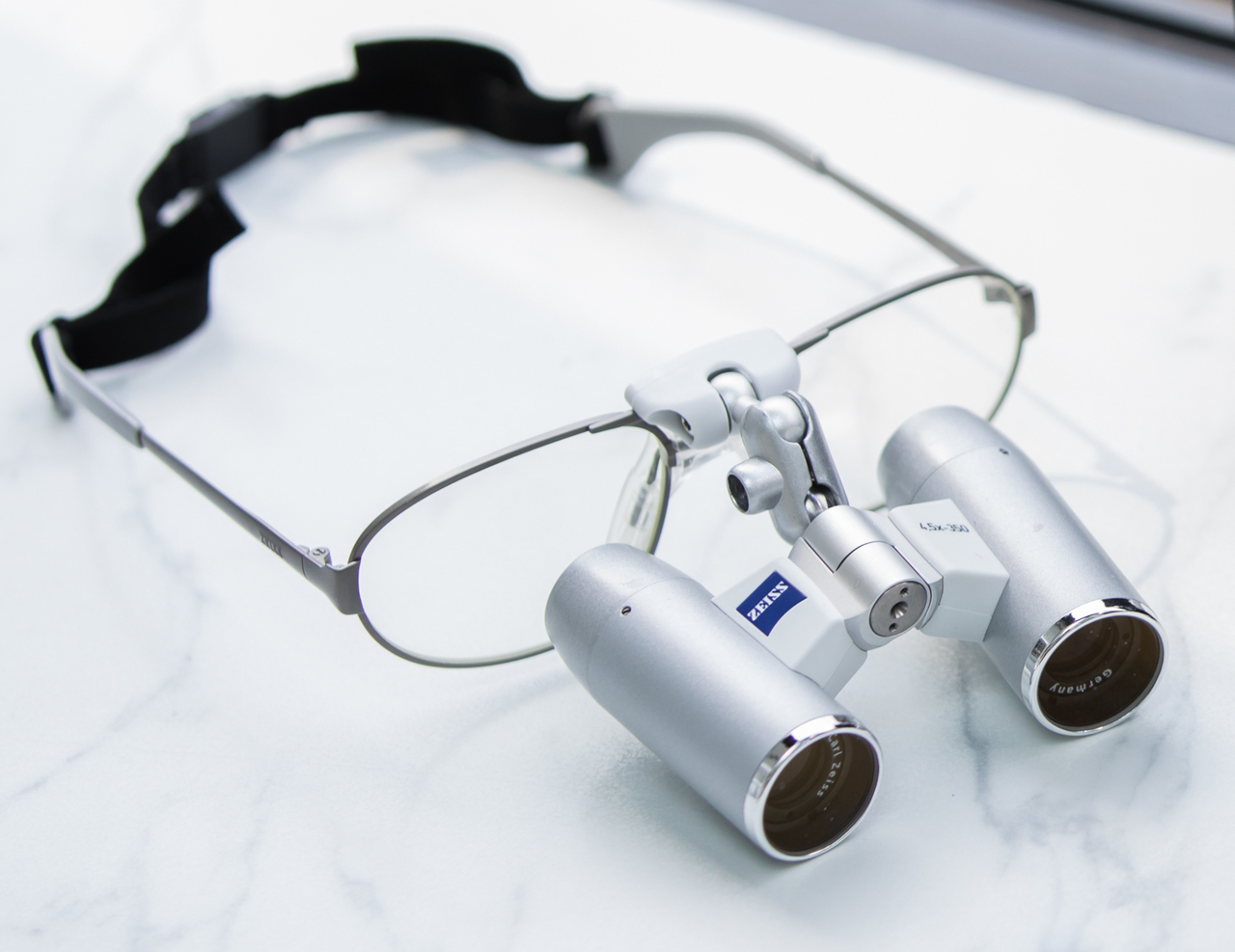 マイクロルーペを用いると、肉眼で見た場合の約4.5倍の拡大視野で治療に臨めます。精密な矯正治療には必須の器具であり、カールツァイスはそのトップブランドとして知られています。