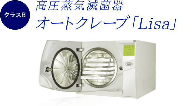 さらに世界でも最高レベルと言われるclassBのオートクレーブ「Lisa」を導入しています。このように院内感染対策を徹底し、患者さまに清潔な環境で、安心して治療を受けていただけるよう最善を尽くしているのです。